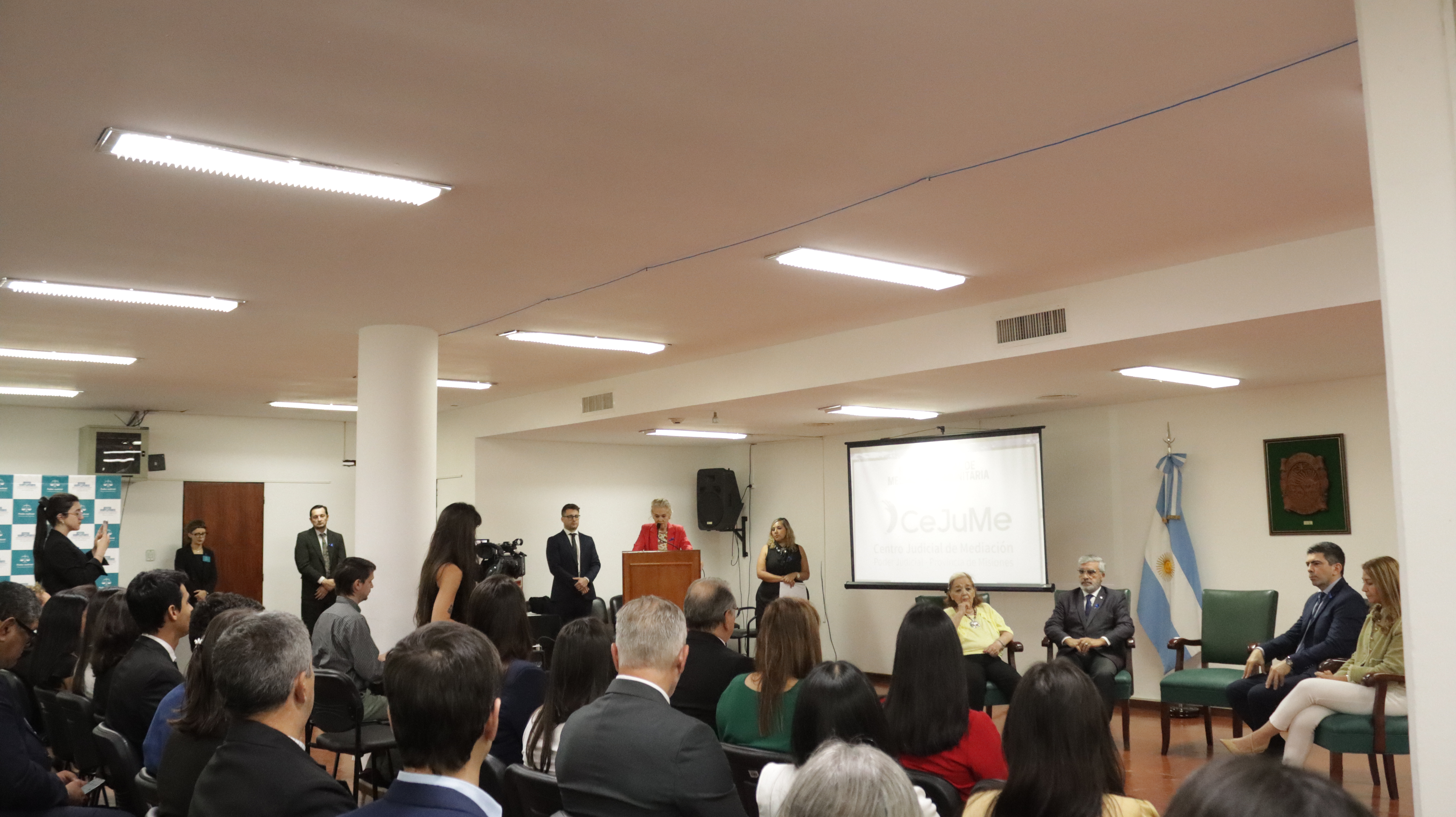 Estuvieron presentes la Presidente del Superior Tribunal de Justicia, Rosanna Pía Venchiarutti Sartori, los Ministros Roberto Rubén Uset, Juan Manuel Díaz, Ramona Beatriz Velázquez y Valeria Fiore Cáceres junto al director del Ce.Ju.Me, José Luis Montoto Guerreiro.